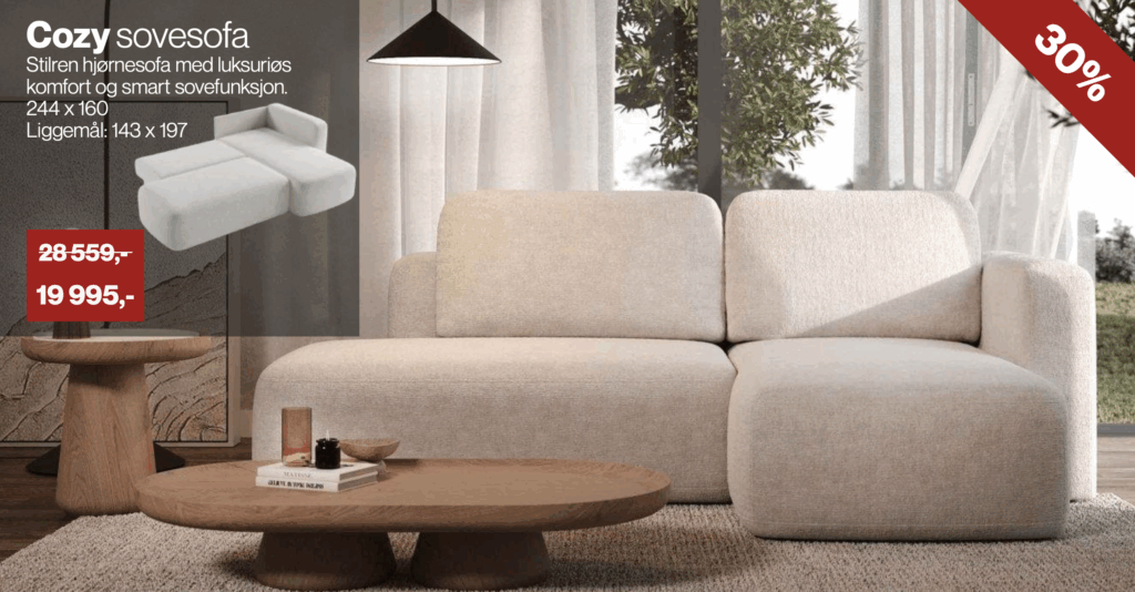 Young hjørnesofa 200×300 – Tessero fargeneOpprinnelig pris var: kr 25 015.00.kr 23 520.00Nåværende pris er: kr 23 520.00. -