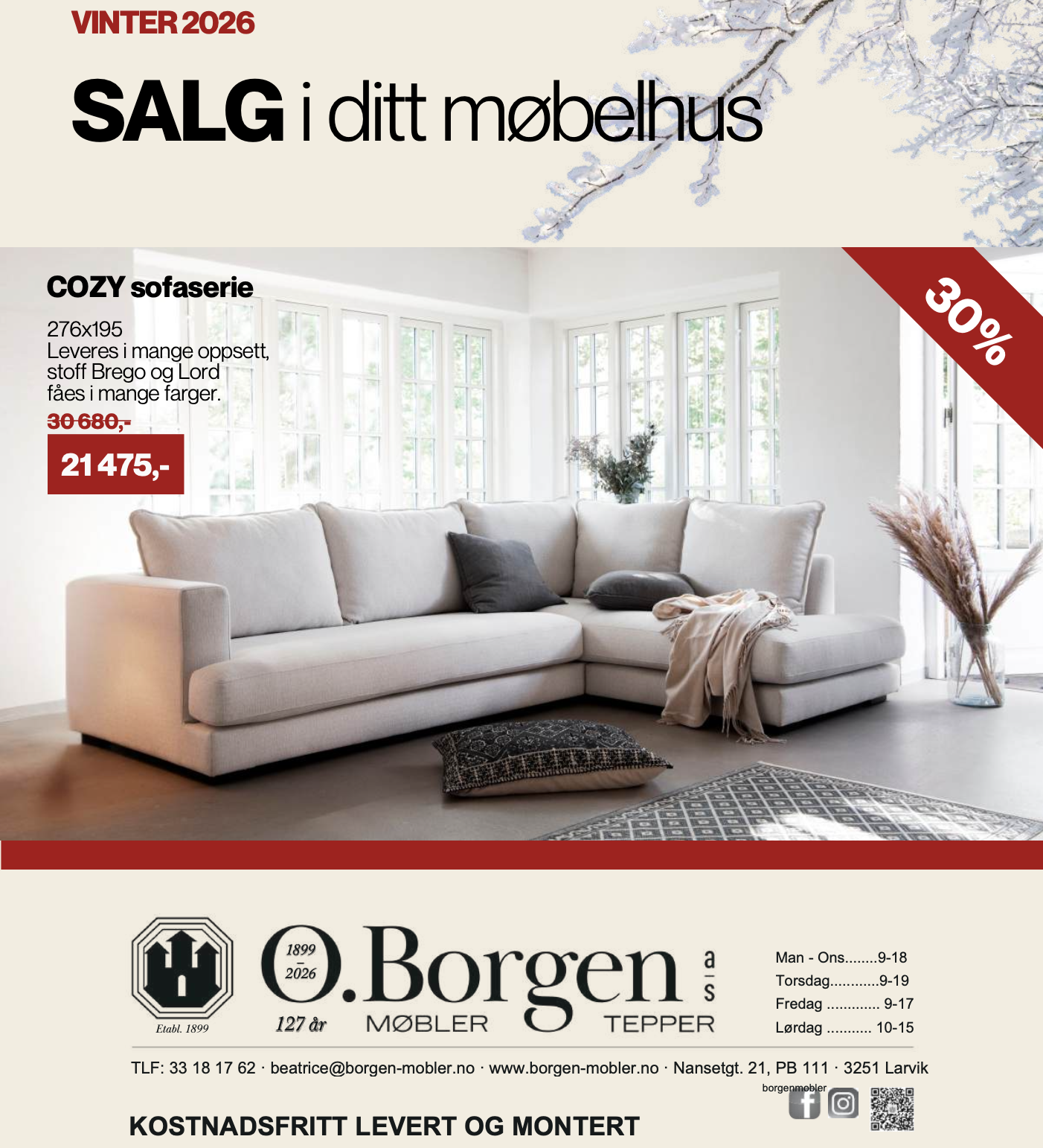 “De fleste produktene fra O. Borgen kan bli Custome Made til dine behov og ønsker, men om man vil ha rask levering så tilbyr vi utvalgte farger med kortere bestillingstid.“