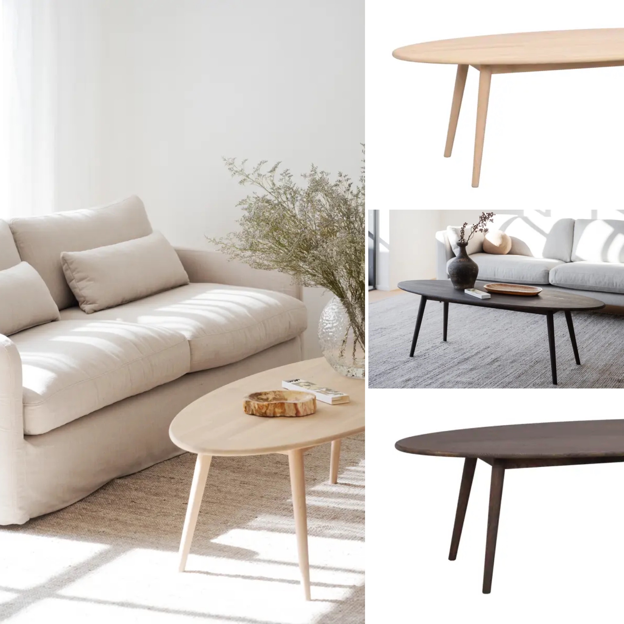 Tompkins sofabord er et harmonisk møte mellom avrundede former og en solid konstruksjon. Det er laget av hvitpigmentert eikefiner og behandlet med olje som fremhever treets naturlige årer og unike karakter. Alle detaljer fra toppen til bena skaper et organisk og innbydende uttrykk. Bordet passer spesielt godt til litt større sofaer, og hvis du kjøper sofabordet i to forskjellige størrelser, kan du kombinere dem som et sidebord foran sofaen. Tompkins sofabord er stabilt, stilig og skapt for å både stå stødig og se mykt ut – det forsterker helhetsinntrykket av den moderne stuen.